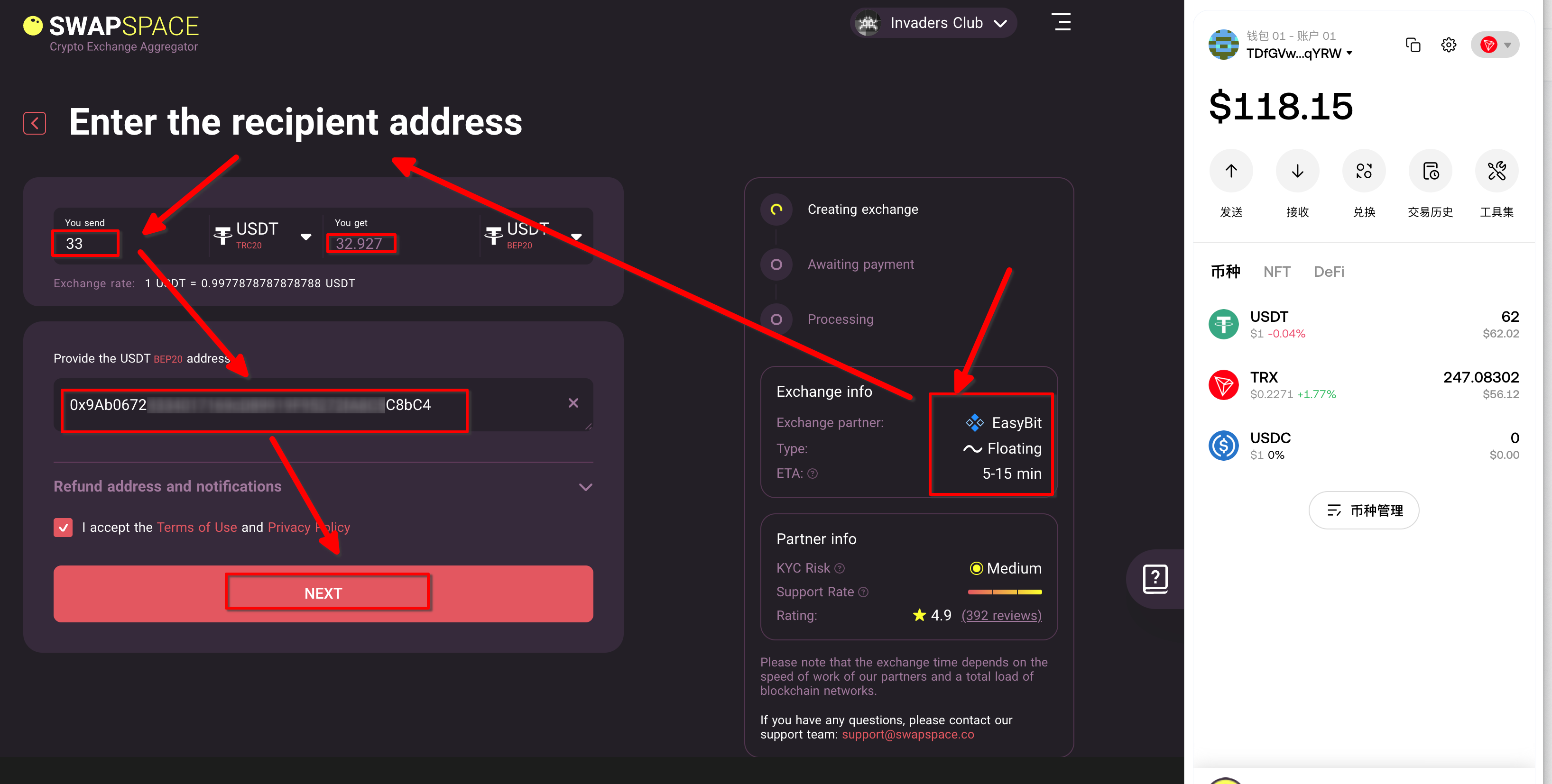 3。 选择TRC-20 兑换 BEP20的USDT,好便宜啊!