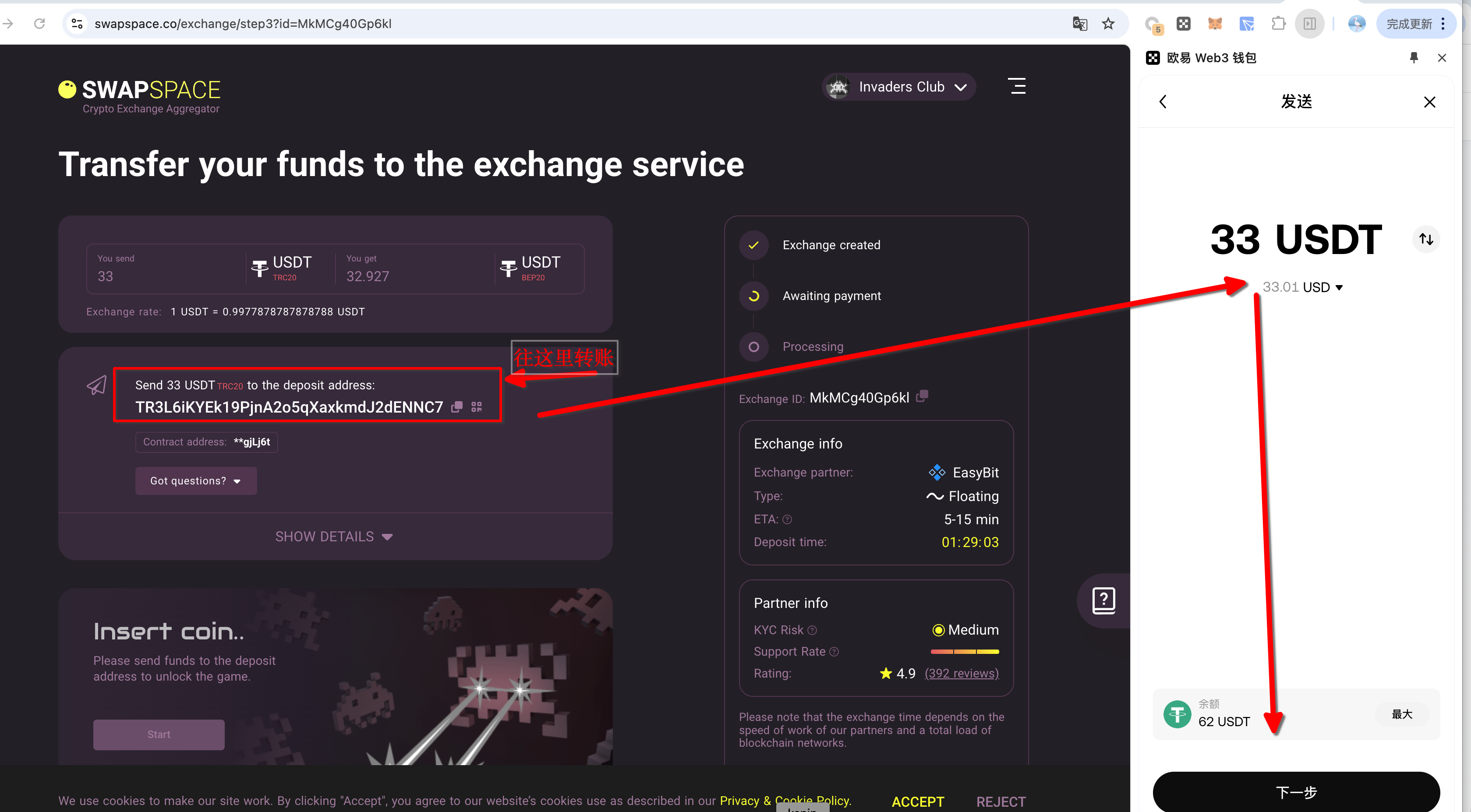 4. 向该地址转U