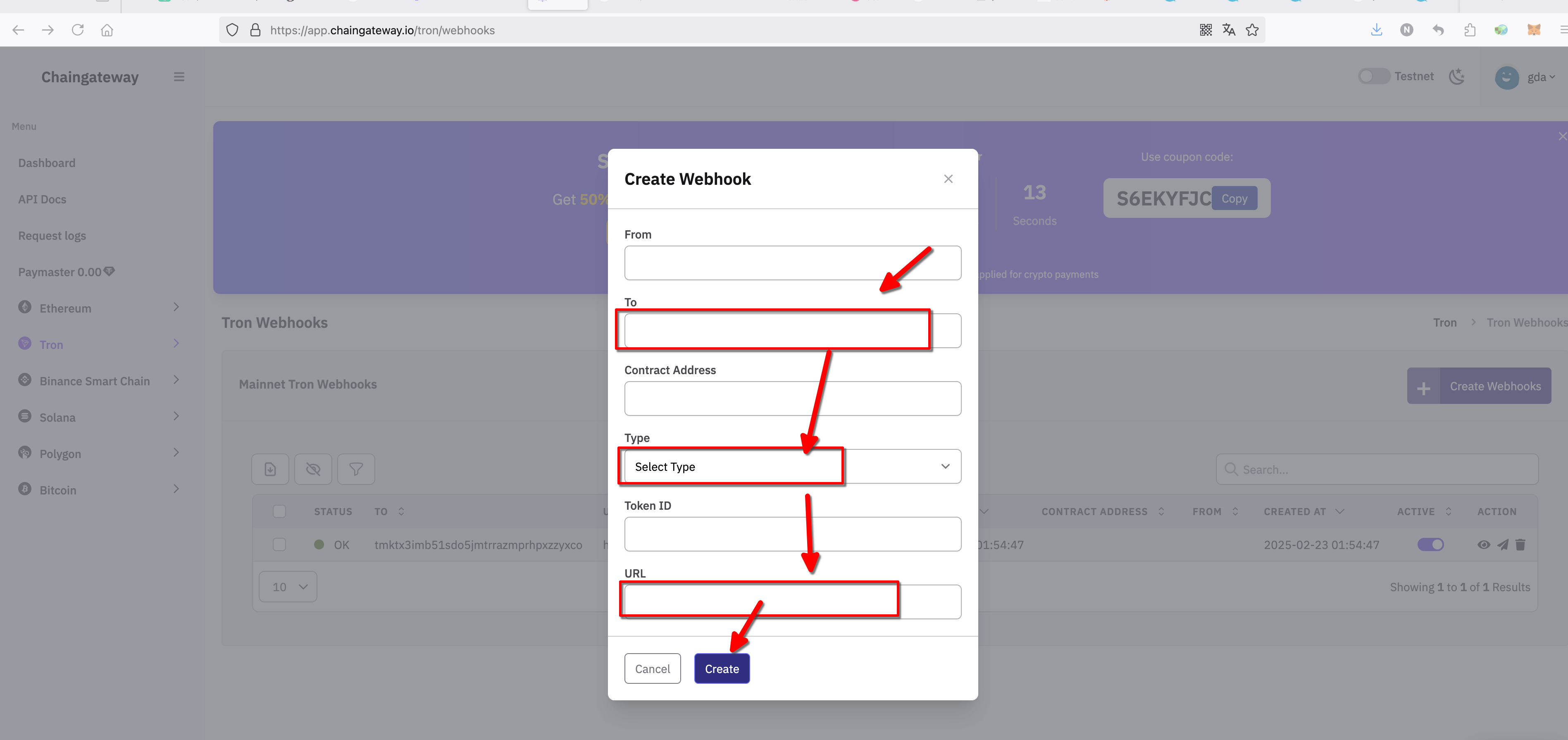 Webhook Chaingate监控tron