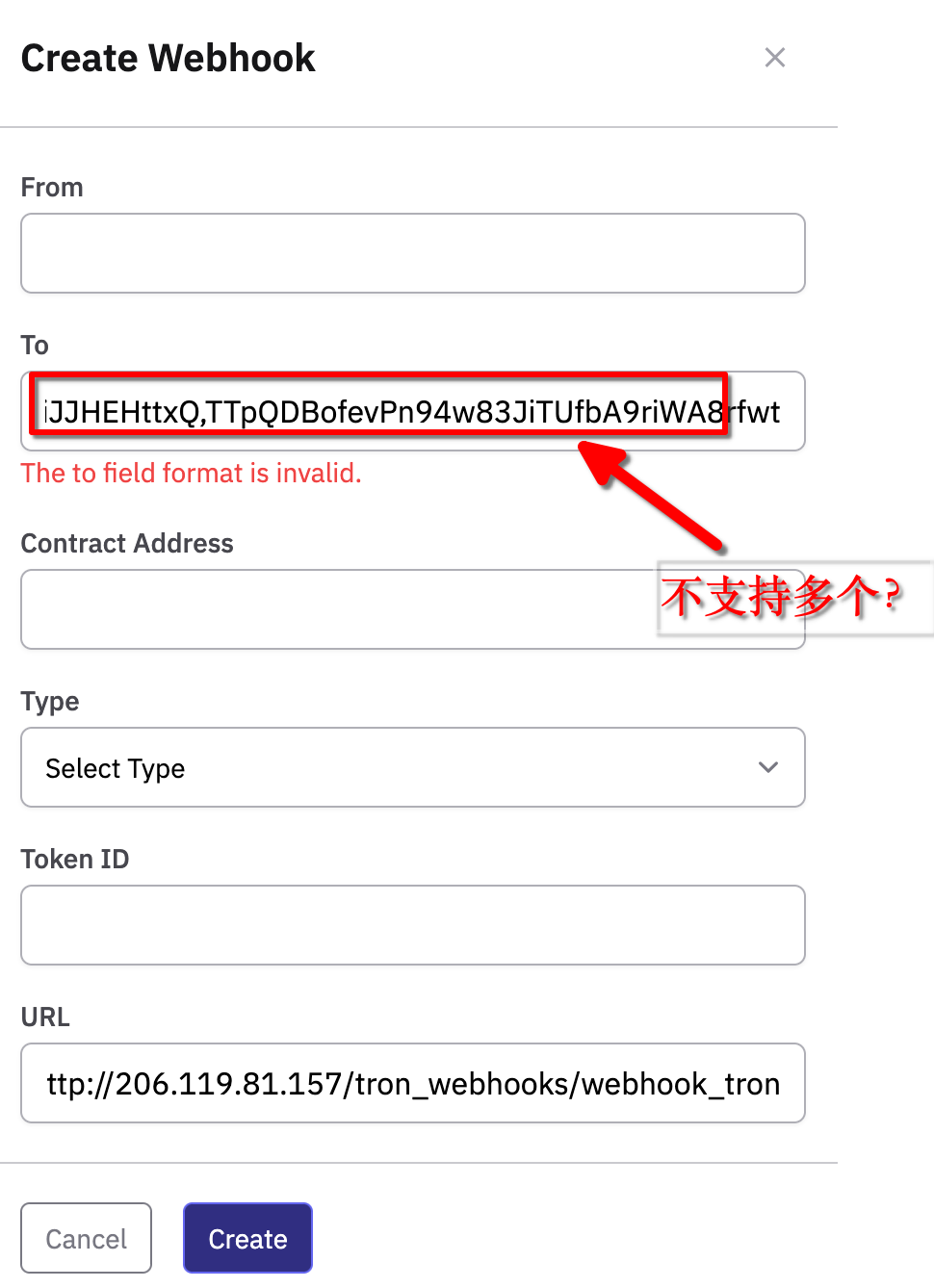 填入 需要监听的地址和 webhook url 即可。 它会把所有的收款(TRX, TRC-20等)都发过来。